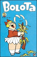 Me recordo de ver alguns desenhos na TV com estes personagens mas foram de exibição tão rara e efêmera que alguns juram que nunca existiram. De todo modo, as capas aqui correspondem aos quadrinhos “Bolota” n° 101 (de 1975), “Brotoeja” n° 1 (de 1968) em inglês “Little Dot” e finalmente “Tininha” (“Little Audrey” nos EUA) nº 89. Todos com 50 páginas coloridas e fazendo menção ao peso (Bolota), bolinhas (Brotoeja), peraltices (Tininha). A Rio Gráfica Editora publicava junto com estes títulos os gibis do “Riquinho” e do “Gasparzinho” personagens de certa forma mais famosos e tradicionais.