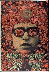 A arte psicodélica dos posters americanos sempre nos brindou com aquela explosão de cores que caracterizou o movimento. Com tipografia própria e desenhos de inspirações esotéricas essa overdose criativa se constitui no maior legado da Era de Aquário.